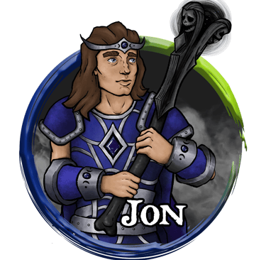 A staunch believer in the goddess of the moon, Jon traveled to Barovia and found a cursed weapon, ultimately fusing him with a mysterious puppetmaster for a long while. Breaking free of this bond, Jon was instrumental in saving Barovia and doing right by his faith and bond.