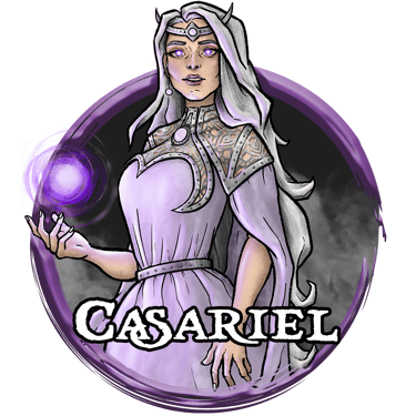 A priestess of the moon, Casariel was a sister-in-arms of Jon, and together with him found herself in Barovia through the power of the Fates. Learning of a terrible truth about her mother and a deal struck between her and the tyrant of the land, she sacrificed all but her own life and that of her party to save the land.